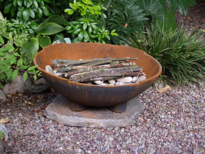 Joanne's FirepitHere is Joanne's firepit installed on its rock, with some temporary contents.